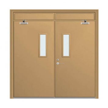 其次,钢制防火门在安装过程中,考虑到门框的弯曲变形这个问题,要在门框宽度方向用木枋支撑起来,门框下脚埋入地面下20mm,再将门框与墙体上的预埋件焊接。然后在门框上角的墙上开洞,灌注水泥、砂、膨胀珍珠岩(1:2:5)的混凝土,等混凝土凝固后就可以使用。